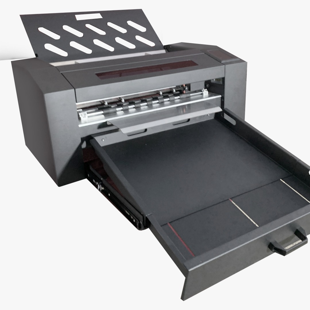 Namibind JH380 Ultra Digital Automatic Sheet Cutter Plotter is a high-performance finishing solution designed for modern print, packaging, and signage environments. Built with advanced digital automation, this unit delivers exceptional cutting, creasing, and finishing accuracy at high throughput, making it ideal for commercial print shops, packaging converters, advertising studios, and digital printing businesses. Equipped with a 370 mm media width, the JH380 handles a wide range of paper stocks, cardboards, labels, and specialty substrates with ease. Its 150-sheet automatic feeding system significantly boosts productivity by reducing manual handling and enabling continuous operation on large jobs. The dual blade head system ensures clean, precise cuts and optimized blade life, while the rotating creasing wheels provide crisp, professional creases without cracking—perfect for folding boxes, brochures, and marketing collateral. Powered by a robust 2000 g max force motor, the JH380 effortlessly processes heavy stocks and thicker materials, maintaining consistent performance across varied media. Connectivity is versatile and user-friendly with Wi-Fi, USB, and UDISK support, allowing direct file transfer from multiple sources and seamless integration into digital workflows. The intuitive digital interface simplifies job setup, while advanced software compatibility allows import of cutting/creasing files from popular design applications. Whether you’re producing prototypes or full production runs, the JH380 delivers precision and repeatability.